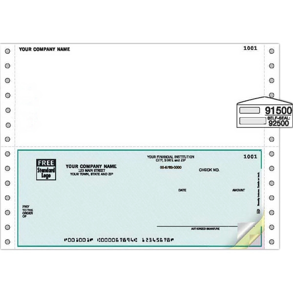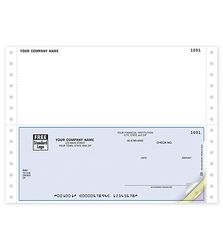 This continuous multipurpose check form comes with a herringbone design! Measuring 8 1/2" x 7" (detached), it has an 8 1/2" x 3 1/2" check. Check security features include UV dull paper, warning box, original document screen, chemically sensitive paper, erasure protection, invisible fluorescent fibers, padlock icon and microprint borders or signature line. It's compatible with Great Plains Accounting and many other financial software packages. This best seller is 100% guaranteed compatible with your software!